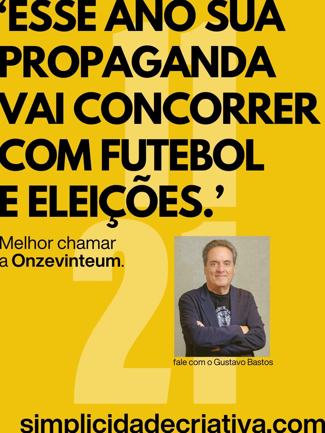 Aproveitando o contexto desse ano, o terceiro conceito da campanha avisa que “Esse ano sua propaganda vai concorrer com futebol e eleições”. A resposta em todos os casos é “melhor chamar a Onzevinteum”.